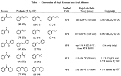 Aldehydes and ketones play a central role in the synthesis of a wide variety of organic compounds. Often the carbonyl group must be removed from a compound when its properties are no longer needed. One of the more commonly used methods for converting carbonyl groups into methyl or methylene groups is the Clemmensen reduction. We wish to report a modification of the Clemmensen reduction procedure which produces aryl alkenes directly from aryl ketones (Eq 1).