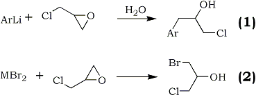With phenylcadmium chloride6, for example, the only material isolated after a 13 h reaction at RT was a dense liquid believed to be a mixture of glycerol bromochlorohydrin and glycerol dichlorohydrin.