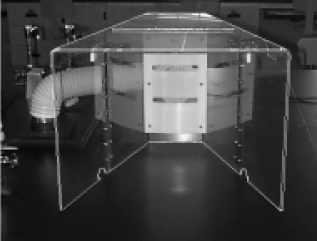 As part of the recent renovation of our undergraduate chemistry laboratories, we were faced with the problem of what to do about hood facilities for the general chemistry laboratories. We wished to have hoods available for all students, but because these would be used only occasionally, installation of full-size hoods was not considered either cost or space effective. The alternative was small bench-top hoods, but other criteria, including ease of storage, flexibility of location, and visibility throughout the laboratory made the commercially available units that we could find unsatisfactory1. None of the commercial designs offered easy storage (unless they were very small to begin with) or the ability to take up minimal bench space while still being functional. In the end, we designed our own and will describe it here for anyone who has similar requirements.