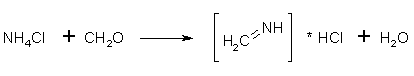 Figure 2: Ammonium chloride condenses with formaldehyde to form methyleneimine In the acid solution, the formaldehyde and ammonium chloride condenses to the unsaturated compound methyleneimine instead of reverting back to HMTA. The HCl is completely dissociated in the water solution.