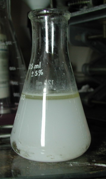 SWIM was quite pleased at the yield, considering the small volcano that happened accidentally during reduction. This synthesis is a pretty convenient one, not hard to carry out at any point.