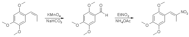 There was around in the Hive a lengthy and comprehensive thread on the preparation of the 2,4,5-trimethoxy- phenyl-2-nitropropene