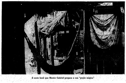 According to the legend told by Master Gabriel, the mariri sprouted on the tomb of Tiuaco. The two plants, strengthened by the blood of heroes, were found many centuries later by Solomon, who, standing before the two tombs, said (according to the Master's imagination): "I come to make the union of the plants so that the liquid produced by the two may be the key to discovering divine mysteries". Thus the religion was born. Various "apostles" succeeded him until Master Gabriel, the Bahian supreme lord of the "vegetalistas", came into the world.Master, do you also do cures? "The only things the União does not cure", Gabriel answers, "are an eye that has been ripped out or a leg that has been cut off. Outside of those, all the rest is cured. There are people who come in wheelchairs and leave walking. Wild madmen come tied up and go back calm and smiling". (The truth is that the crazy people leave the session hall completely doped by the drug.)