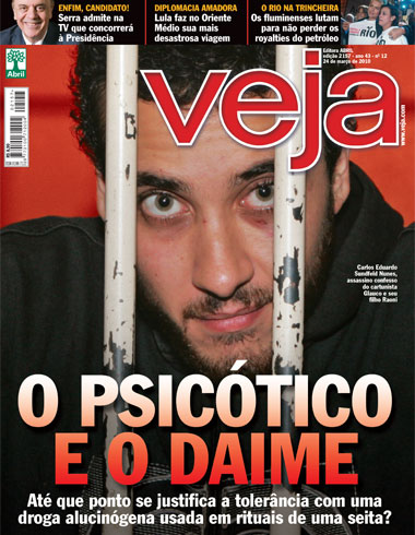 On the night of March 12, 2010 Glauco Vilas Boas and his son, Raoni Vilas Boas, were shot to death at their house in Osasco in São Paulo (SP). Glauco was one of Brazil's best-known cartoonists and leader of the Céu de Maria church in SP, one of the largest Santo Daime centers outside of the Amazon region, while his son was a young university student. The person charged with the murders is 24 year-old Carlos Eduardo Sundfeld Nunes ("Cadu"), a 24 year-old member of an upper-middle class family in São Paulo (SP). Allegedly suffering from problems of drug abuse, a schizophrenic mother and an inability to work or study for several years, he had joined the Santo Daime religious rituals directed by Glauco in search of relief and healing.The tragic death of Glauco and his son has made the debate about ayahuasca a national issue in Brazil, where the use of this controversial substance, which has sporadically caught the attention of the media for the past 25 years, has been legal since the mid-eighties. At first, with very few exceptions, the media covering the murders showed a respectful attitude towards Santo Daime. Even when the controversies surrounding the case began to emerge their approach to the religion itself remained neutral. However, this suddenly changed when, after being captured when trying to escape to Paraguay, the alleged murderer told TV reporters that he wanted to kidnap Glauco to prove to his family that he was Jesus Christ (and thus avoid being forcibly placed in a psychiatric clinic by his family). Other than that, his father and lawyer claimed that Cadu had gone "psycho" after joining the Santo Daime rituals, which caused a sudden shift in the media towards the stereotyped, anti-drugs point of view usually found in their coverage of the use of psychoactive substances. Many reports of the case in newspapers, magazines, TV programs and internet sites uncritically set forth the theory that the consumption of ayahuasca had been responsible for the crime, as seen, for example, in the covers of two of the Brazil's most popular weekly magazines, Veja and Época.
