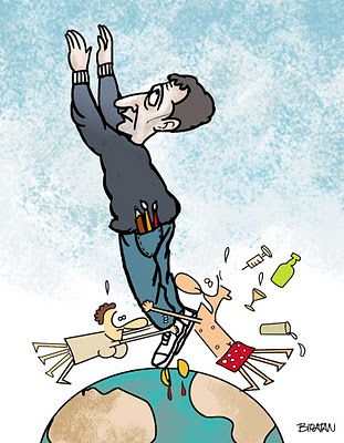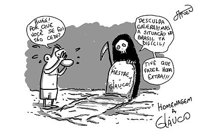"Sniff, sniff! Why did you leave so early?" cries out Glauco's fan. "Sorry, folks! But the situation in Brazil is really hard... I had to do some overtime!", answers the Reaper. |