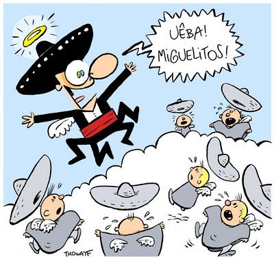 "Oh yes! Miguelitos! ("Little Michael" in Spanish)", exclaims Glauco, dressed as one of The Three Friends. In their comic strip, the Miguelitos were the goody-goody little boys the bandits loved to terrorize. |