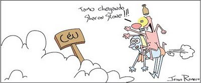 Geraldão gets to heaven, and says: "No shit! That talk about angels not having sex is serious!". On the side, the cartoonist writes "Rest in peace, master!" with his signature below. |