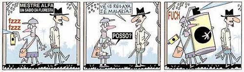 In a short-lived series, Master Alfa used to appear strolling about the Amazon rainforest as counterpoint to the main character called Zé Malária ("Malaria Joe"), an anthropologist from the big city in the more developed southeast of Brazil who ventures into the jungle desperately afraid of dangers such as venomous animals, with his potent insecticide spray can in hand.