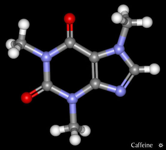1674. Caffeine. 3,7-Dihydro-1,3,7-trimethyl-IH-purine2,6-dione; 1,3,7-trimethylxanthine; 1,3,7-trimethyl-2,6-di oxopurine; coffeine; thein; guaranine; methyltheobromine; No-Doz. C8H10N4O2; mol wt 194.19. C 49.48%, H 5.19%, N 28.85%, O 16.48%. Occurs in tea, coffee, mate leaves; also in guarana paste and cola nuts: Shuman, U.S. pat. 2,508,545 (1950 to General Foods). Obtained as a by-product from the manuf of caffeine-free coffee: Barch, U.S. pat. 2,817,588 (1957 to Standard Brands); Nutting, U.S. pat. 2,802,739 (1957 to Hill Bros. Coffee); Adler, Earle, U.S. pat. 2,933,395 (1960 to General Foods). Crystal structure: Sutor, Acta Cryst. 11, 453(1958). Synthesis: Fischer, Ach. Ber. 28, 2473, 3135 (1895); Gepner, Kreps, J. Gen. Chem. USSR> 16, 179 (1946); Bredereck et al., Ber. 83, 201 (1950); Crippa, Crippa, Farmaco Ed. Sci 10, 616 (1955); Swidinsky, Baizer, U.S. pats. 2,785,162 and 2,785,163 (1957 to Quinine Chem. Works); Bredereck, Gotsmann, Ber. 95, 1902 (1962). Reversed-phase HPLCstudy: J. W. Weyland et al.. J. Chromatog. 247, 221 (1982). Effect of pregnancy on the pharmacokinetics of caffeine: R. Knutti et al, Arch. Toxicol. 5, Suppl., 187 (1982). Binding of caffeine on benzodiazepine receptors: V. Saano, M. M. Airaksinen, Acta Pharmacol. Toxicol 51, 300 (1982). Disposition of caffeine and its metabolites in man: D. D. Tang-Liu et al., J. Pharmacol. Exp. Ther. 224, 180 (1983). Arrhythmogenic effects in humans: D. J. Dobmeyer et al., N. Engl. J. Med. 308, 814 (1983). Teratogenicity study: P. E .Palm et al., Toxicol. Appl. Pharmacol. 44, 1 (1978). Comprehensive description: M. U. Zubair et al., in Analytical Profiles of Drug Substances vol. 15, K. Florey, Ed. (Academic Press, New York, 1986) pp 71-150.