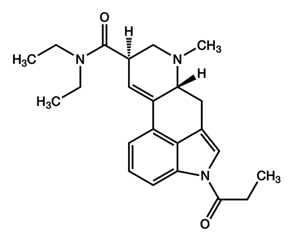 1P-LSD is a psychedelic in the lysergamide class. It first emerged in the UK in January 2015, just a week after the previously popular lysergamides LSZ and AL-LAD were scheduled there. 1P-LSD had no mention in scientific literature or history of human use prior to 2015. It has been sold on standard ¼" blotter squares ostensibly containing 100 or 125 µg each. At $7-10 for a single hit or $350 for a sheet of 100 hits, prices are competitive with other research chemical lysergamides and black market LSD.