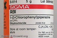 mCPP is a 5-HT receptor agonist that has been used as a challenge drug in MDMA research, and has been studied for possible migraine-inducing effects. In the mid-2000s, it has shown up in pills sold as Ecstasy (Europe; USA).