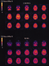 On a magnetic-resonance scanner, we obtained two sequences--one for identification of the anterior commissural-posterior commissural line, and another for coregistration with PET. The first sequence consisted of a set of T1-weighted scout images with the following imaging variables: TR-500, TE-20, slice thickness 5 mm with no gap, 128×256 matrix, and 1 nex. The second sequence was an axial spin density/T1-weighted, 3D volumetric scan using rf "spoiled" gradient echoes. This dataset was used for identification of grey matter and white matter. Imaging variables were: TR 35, TE 5, flip angle 45O, 1·5 mm effective slice thickness, no gap, 124 slices within plane 192×256 matrix, 24 cm field of view, and 1 nex.