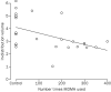 Decreases in 5-HT transporter binding positively correlated with extent of previous MDMA use, (r=-0·50, p=0·005, figure 4), consistent with data in animals of exposure-related loss of 5-HT terminals after MDMA administration.1,2,5-8 There was no correlation between the duration of abstinence from MDMA and the extent of specific [11C]McN-5652 binding (r=-0·09, p=0·75). All participants in the MDMA group were negative for recent drug use.