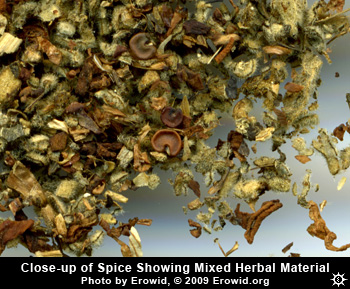 Though some of the herbs listed on the Spice packaging are known to have mild psychoactive effects, it was obvious to the Erowid crew that none of the herbs by themselves could be responsible for the level of effects that were reported. The only listed herb with which we were not familiar was indian warrior, presumably Pedicularis densiflora, which we later confirmed does not have effects similar to Spice when smoked.