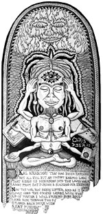 Within this definition, Visionary Art would include a few big name artists, but it would also include some Outsider Art, some fantasy illustration and comic book stuff, as well as the so-called "psychedelic" art. One source for such art, Erowid's Visionary Art Vault seems to focus specifically on the last category. We don't know for certain, but we can assume that many if not most contributing artists have been inspired by personal experiences brought on by the use of psychoactive drugs. In that sense, these works are the visual equivalent of "trip" experience reports. They are valuable not only for their aesthetic power (which varies considerably), but also as an anthropological record of subjective experience. Like trip reports, they represent both information and creative revision — as well as the occasional tendency to drift into clichéd and derivative forms.