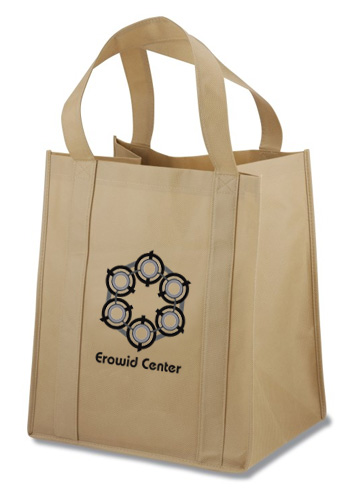 Become a member and get an Erowid Center reusable grocery bag as your thank-you gift.This tan/khaki colored bag is made of polypropelyne, is 13" (w) x 12" (h) x 8" (d), and has two 20" reinforced straps and a removable plastic insert that fits in the bottom. Boths sides bear the Erowid logo over the words "Erowid Center". |