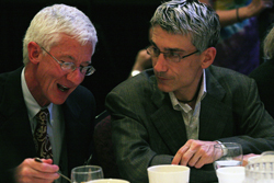 The room where Track 1 presentations happened during the daytime doubled as the space where the banquet was held; over 500 people were seated therein for the sold-out Shulgin dinner. Conference admission did not include a space at dinner, and anyone could purchase dinner tickets; this undoubtedly caused disappointment for some late-to-the-game conference attendees who were unable to score a meal ticket. Still, this was the largest dinner that I had ever been to. Although it was not an intimate affair, the giant projection screens showing the faces of those giving tribute to the Shulgins helped tremendously, and it was a treat to watch the during-dinner slide-show that featured photos of the Shulgins and their friends over the years.The meal itself was strangely inconsistent East Indian food, with a particularly disappointing dessert. Most of what I selected turned out to be forgettably bland. Yet others found the meal largely inedible, due to some dishes being too spicy hot. Indeed, one child at the head table appeared to be crying in reaction to the burn.