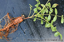 Licorice is an erect herb growing from a stringy taproot up to 4 feet long which is brown on the outside and yellow on the inside. The plant grows 3-7 ft tall and has 1-2 inch long yellow-green, slightly sticky leaves. Flowers are 1/2 inch long and purple or lavender.