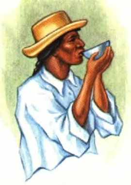 Indian patient drinking potion prepared from Ipomoea seeds.