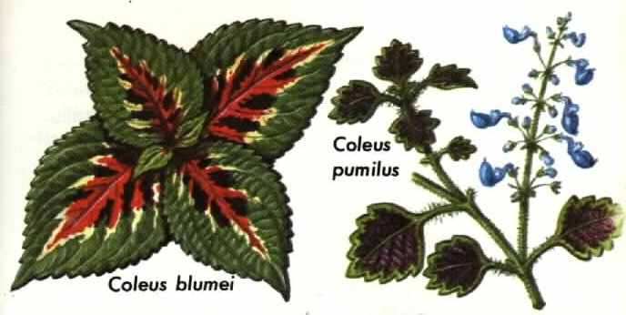 COLEUS (Coleus pumas and C. blumei) is cultivated by the Mazatecs of Oaxaca, Mexico, who reputedly employ the leaves in the some way as they use the leaves of Salvia divinorum ( see p. 137) . Indeed, the Indians recognize the family relationship between these two genera of mints, both of the family Labiatae. They refer to S. divinorum as la hembra ("the female") and to C. pumilus as el macho ("the male"). There are two forms of C. blumei, which they call el niño ("the child") and el ahijado ("the godson").