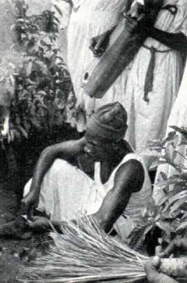 "Payment of the Ancestors," taking place between two shrubby bushes of tabernanthe iboga in the Fang Cult of Bwiti, Congo. (Photo by J. W. Fernandez )