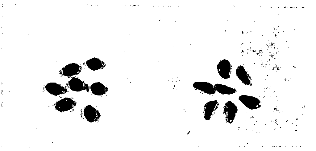 Seeds of Rivea corymbosa Hall. f. (left) and of Ipomoea violacea L. (right)