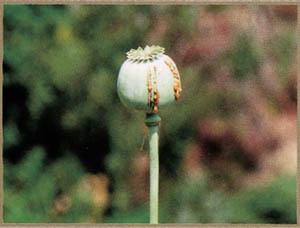 Smack, china white, horse, black tar . . . all slang names for heroin. We are often told what happens to our bodies and our minds if we use this drug, but less commonly discussed is how the byproduct of a simple flower is converted into one of the most addictive drugs known to man. Also, not discussed much is how this drug makes its way from far-off growing areas to the United States. The abuse of heroin-whether by inhalation, ingestion, or injection-is the last step in a process of many, and it is those preceding steps that we will discuss. Opium poppyfields in the northern Shan State of Burma. Flowering Opium Poppy Mexican Black Tar Heroin Heroin #4, also known as Smack, China White, and Horse.