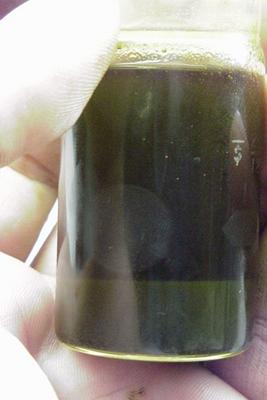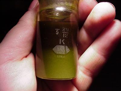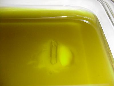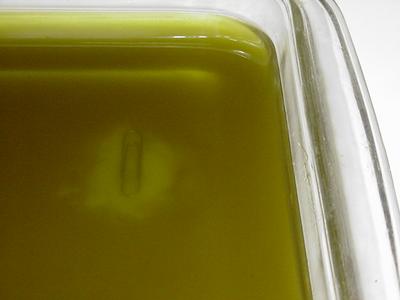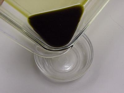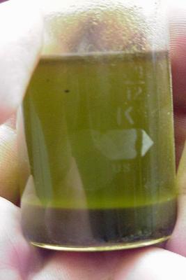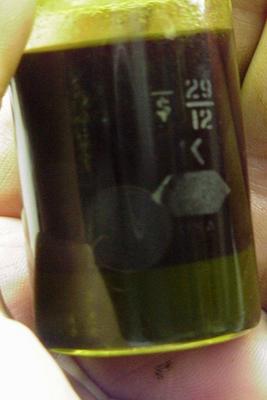 Ready for transfer: When the IPA evaporates down this far it thickens up quite a bit and the waxes start to come out of the fluid. The liquid should be transferred before the wax starts to precipitate out or becomes small particles. |