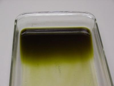 Pooled IPA extract: This is the same amount of fluid pooled up into one end of the container, one end of the pan was lifted. |