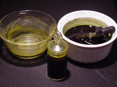 Once all of the extraction solvent has been completely evaporated, it can be scraped up and reconstituted with drinking alcohol to make a very dark and perhaps harsh tasting tincture, but it will be very effective. If you want to make a better tasting tincture you can remove most of the black wax using Naphtha. If you're going to take this extra step, you can just pour some clean Naphtha into the extraction dish, scrape up all of the extract, and place it all (Naphtha and all) into a narrow glass container. What you will be doing is washing out most of the wax from the extract with the Naphtha, which Salvinorin isn't soluble in. After the particles have settled for a half hour or more remove the Naphtha, leaving the crude extract that has settled in the bottom behind, pour in more fresh Naphtha, and wait another half hour or more before pouring it off again. After a few washes like this the crude extract in the bottom of the container will become lighter and lighter colored. Once the extract is no longer a dark black color and lightens to a pine needle green you can stop washing with Naphtha and dry the crude extract. The dry extract should have enough of the wax removed so that it is a dark green. The texture of the dried extract should be a dry grainy substance that can be crushed with a spoon. Don't be concerned if it has a thin crust of dark black on top when dried, as this is normal. You will have a small thin upper crust of black on top, but this layer should be so thin that it is about the thickness of a piece of photocopy paper when completely dry. When crushing the extract, this top layer should thoroughly mix in with the dark green Salvinorin to such extent that you no longer see any black in the powder at all, just a dark green powder. After the extract is completely dry and with absolutely no hint or smell of Naphtha remaining, you can reconstitute with drinking alcohol. I have found that this step will produce a tincture that is extemely high quality and every bit as good as the best that is available on the commercial market, perhaps even more potent. It is potent enough to reconstitute the extract into 151 proof Everclear and still make a very effective tincture, although reconstituting with 98 percent drinking alcohol would be even better.Notes