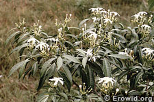 Tabernaemontana are generally large shrubs or small trees native to the tropical rain forests of Central and South America, Africa, and Australia. Several species have been found to contain indole alkaloids including ibogaine and voacangine.