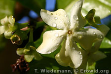Voacanga africana is a small tropical tree with yellow or white flowers. The bark and seeds of the tree contain iboga alkaloids and have been used in Western Africa as a poison, stimulant, aphrodisiac and psychedelic.